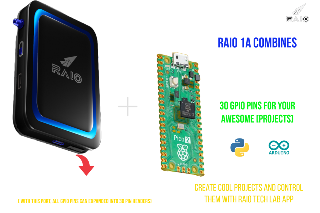 RAIO 1A has six serial ports, one of it's six serial port is connected with I-MCU(RP2354A) UART0, this thing can be used to create cool projects with pico-2, which can further be share there sensor data to long distances via nrf24l01 and lora llc68 radio chipsets. PICO-2 projects can also be control via RAIO TECH LAB APP.